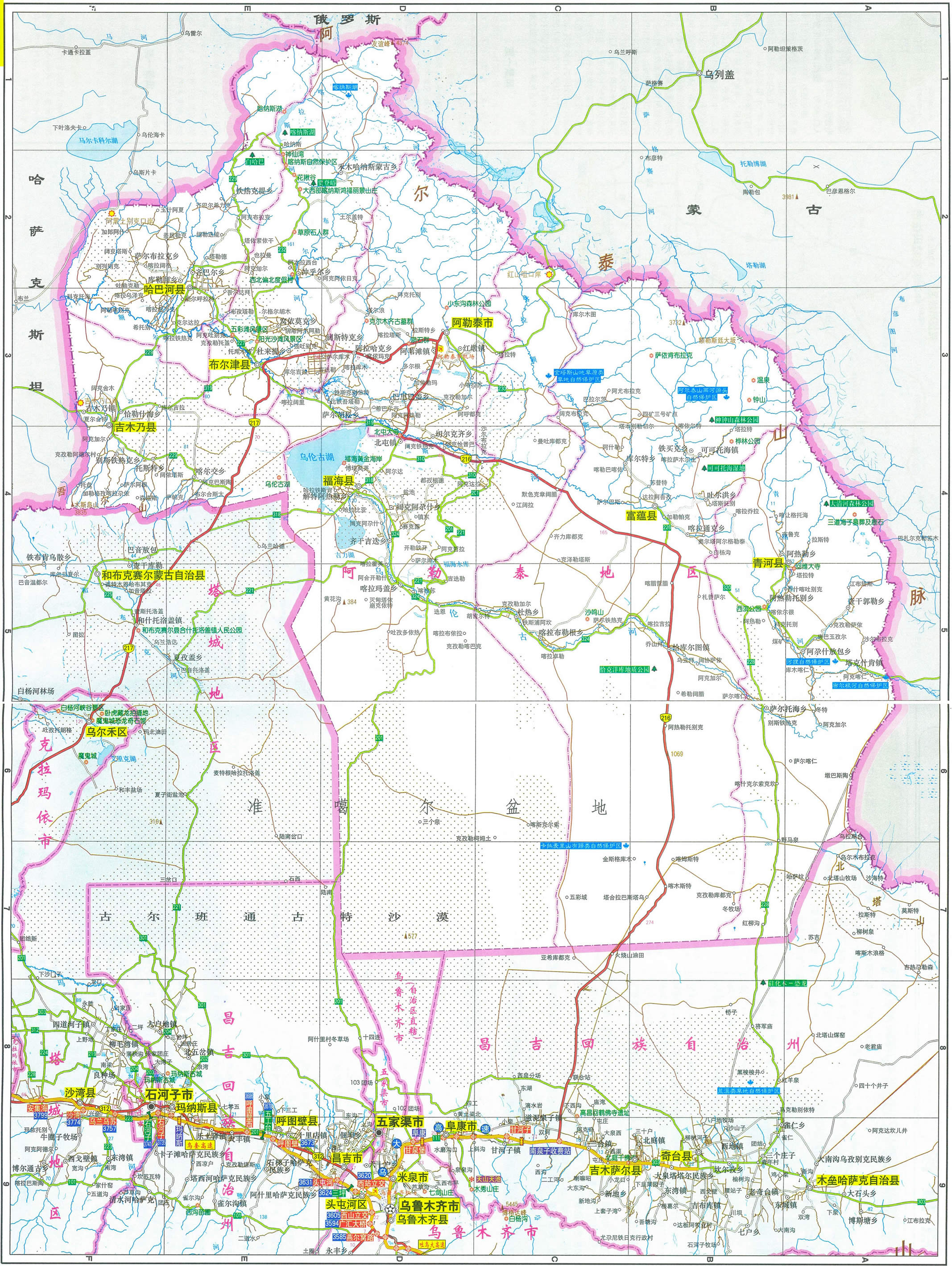 阿勒泰地區(qū)轄1個(gè)縣級(jí)市,6個(gè)縣: