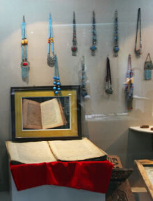 館中展出了在刀郎地區(qū)收集到的部分古老器物、錢幣、文牘、書籍,讓見證了物質(zhì)的刀郎;刀郎人古時勞作生活的塑像、古老的居室、用具、物品,則使通過時間的隧道,回到了古老的時代,與昔日的刀郎人對話。