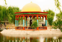 刀郎部落景區(qū)的面積較大,長寬都有近1公里,進入景區(qū)后可以步行游玩,大約3-4小時為宜。 景區(qū)的西側(cè)緊靠河流,這里種植了百果園,環(huán)境清新優(yōu)美,在遍地戈壁的新疆地區(qū)十分獨特。河灘上還修建了沙雕公園和林則徐雕像等,適合拍照合影。在河中央,有一處水上娛樂區(qū)和一座露天的生態(tài)游泳館,可以在此享受玩水的樂趣。 景區(qū)的中部,是以休閑娛樂和展示刀郎民俗文化為主。