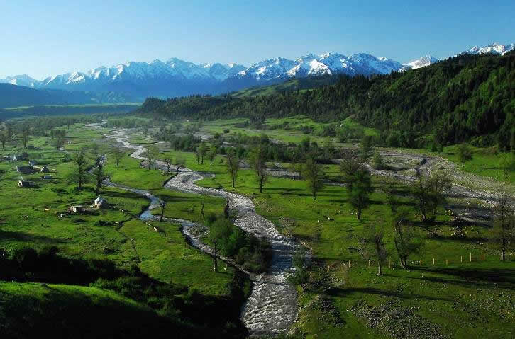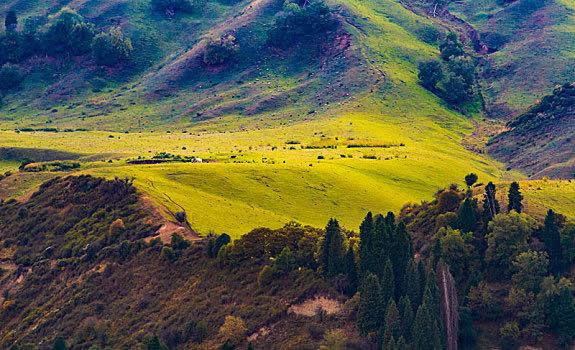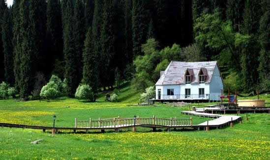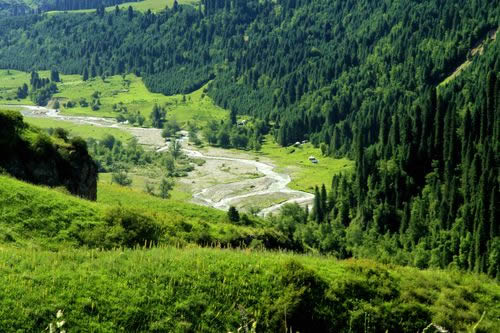 伊犁的草原風景區(qū)都是處在東西走向的河谷地帶,唯獨伊犁鞏留縣東部山區(qū)的庫爾德寧是在一條南北走向的山間闊谷,長約14公里,最寬處約1公里,谷底平均海拔1500米,庫爾德寧便是哈薩克語“橫溝”的意思。特殊的南北走向,使得庫爾德寧冬暖夏涼,四季氣候宜人,所以庫爾德寧既是伊犁著名的風景區(qū),又是旅游避暑的勝地,兼具江南山鄉(xiāng)的嫵媚清秀和草原景色的博大粗獷,吸引著越來越多的國內(nèi)外游客。她的絕色天姿和超凡脫俗的自然景觀令人嘆為觀止,使人無限向往。