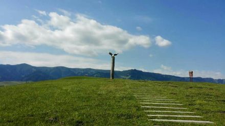 天上的云像是潔白的羊群圍繞著連綿的山峰,又像是奔騰的駿馬馳騁在山谷間。云霧相遇纏繞,仿佛置身于云海之中,故而得名天云臺。陪伴在天云臺身邊的是一幅巨型的草原姑娘浮雕,展示了哈薩克族女性的勤勞與善良,仿佛在說:“有朋自遠(yuǎn)方來不亦樂乎”。