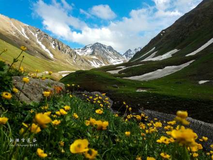 天神臺空谷幽靈,舉目藍(lán)天如洗,白云飄逸,雪山聳立。又名“雪蓮谷”,因海拔達(dá)到了3000米似與神靈同住,讓心靈在圣潔中凈化。又因其在天空中鳥瞰酷似一朵盛開的雪蓮花而得名,周圍險峻的山峰如同雪蓮花瓣,山谷中奇異的鮮花如同雪蓮花蕊。積雪為雪蓮的生長提供了適宜的環(huán)境,每年7、8月份雪蓮花孤傲綻放,獨(dú)語高山。