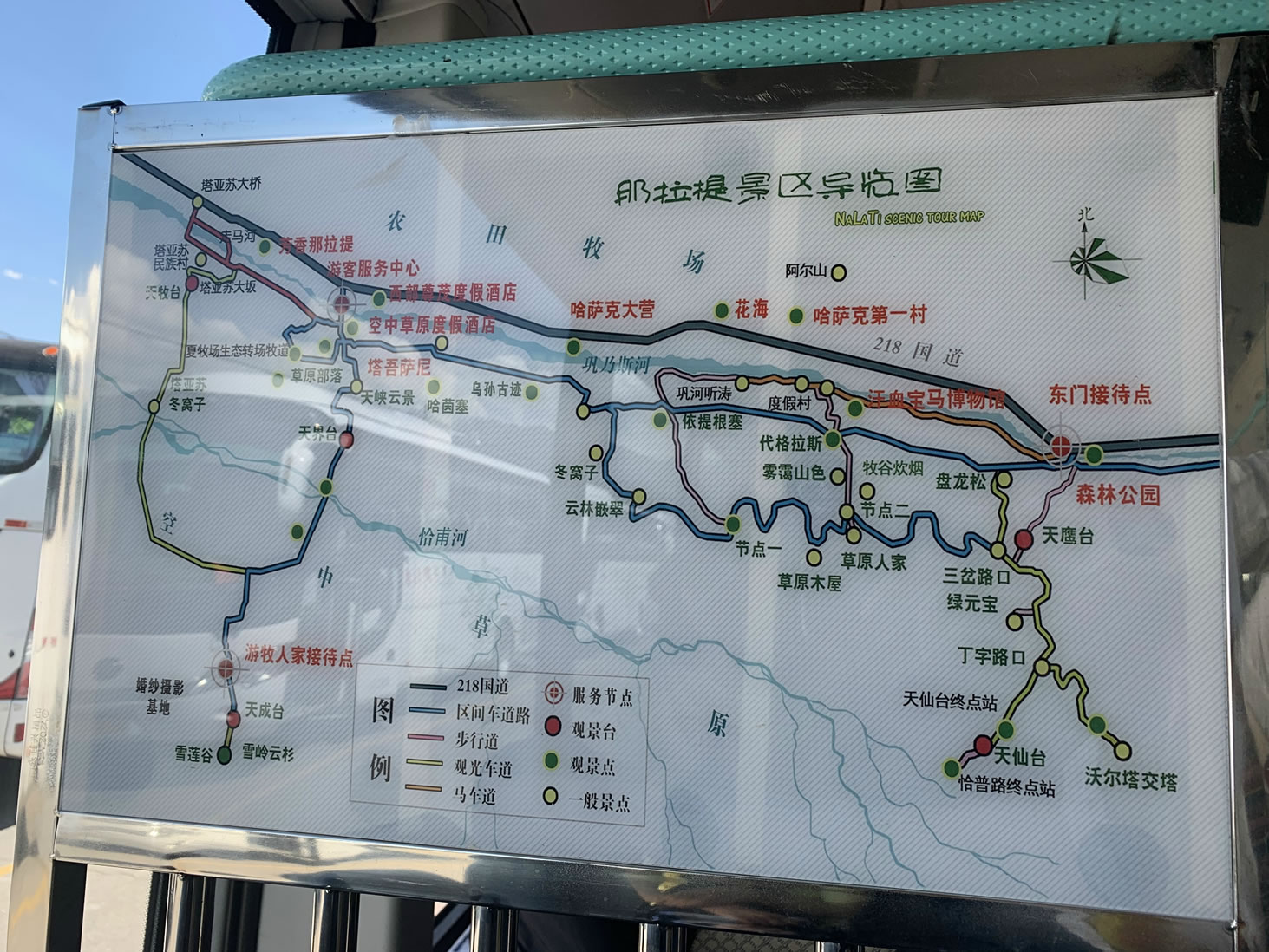 那拉提旅游風(fēng)景區(qū)內(nèi)集草原、溝谷、森林于一體,植被覆蓋率高,野生動物資源豐富,因自然生態(tài)景觀和人文景觀獨(dú)具特色,而被譽(yù)為“天山綠島”“綠色家園”“五彩草原”。主要景點(diǎn)有天界臺、游牧人家、塔吾薩尼(哈薩克語意為“美麗的山溝”)、天仙臺、沃爾塔交塔觀景臺、雪蓮谷等。