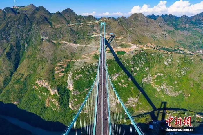 9月28日,世界第一高橋——貴州六枝至安龍高速公路花江峽谷大橋正式通車運營。(無人機(jī)照片) 中新社發(fā) 龍建睿 攝