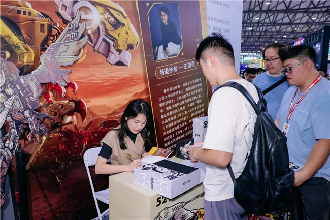 作為國(guó)創(chuàng)變形機(jī)甲代表性IP,猛獸匣(BEASTBOX)系列成為本次52TOYS展區(qū)的最大亮點(diǎn),產(chǎn)品和內(nèi)容成果頗豐。備受玩家期待的猛獸匣首部官方小說《猛獸匣:金屬之歌》珍藏版在展會(huì)現(xiàn)場(chǎng)超前發(fā)售,小說作者、曾榮獲中國(guó)科幻銀河獎(jiǎng)最佳新人獎(jiǎng)的科幻作家王諾諾親臨現(xiàn)場(chǎng)簽售。小說以其精美的裝幀與引人入勝的設(shè)定,迅速成為資深玩家與科幻愛好者爭(zhēng)相收藏的對(duì)象,現(xiàn)場(chǎng)等候簽售及購(gòu)買的粉絲排起長(zhǎng)龍。