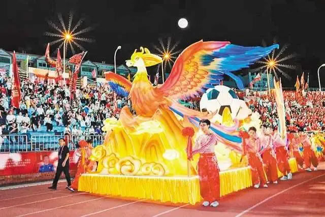 在梁平,一群足球愛好者用一部時長4分33秒的微電影致敬足球;在彭水,舞龍、舞獅、玩牛等富有地方特色的非遺展示輪番登場;充滿巴渝特色的秀山花燈、銅梁龍舞也在賽場頻頻亮相……
