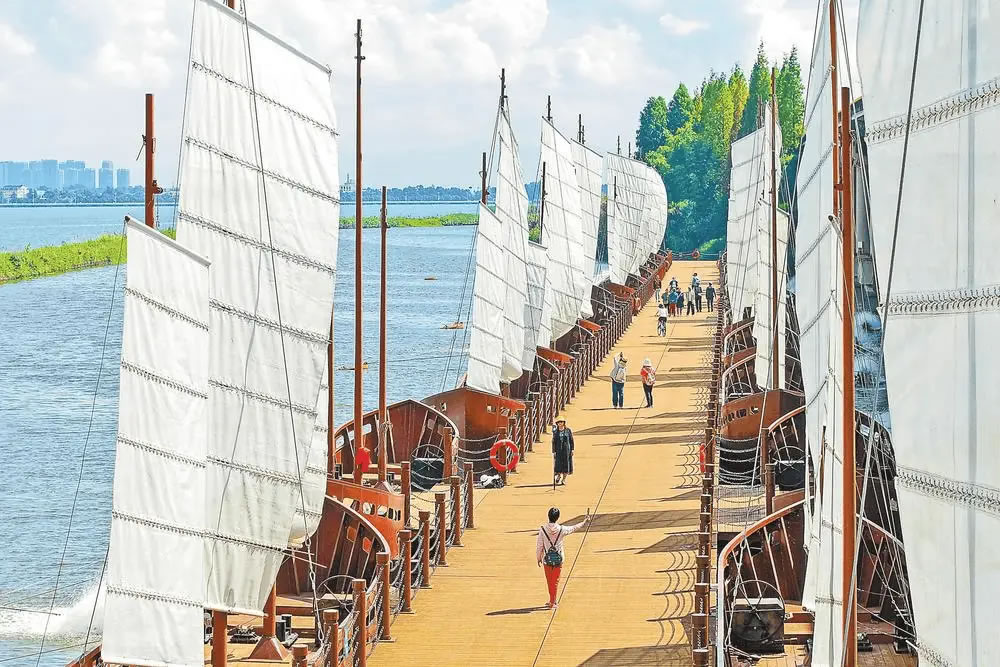 近日,昆明滇池綠道環(huán)草海段鋼浮橋重新向公眾開(kāi)放。該橋是我省首座大型鋼浮橋,全長(zhǎng)260米,以24組“帆船”造型藝術(shù)化再現(xiàn)“百舸爭(zhēng)流、千帆競(jìng)發(fā)”的滇池古渡意象。該浮橋在2023年建成后曾對(duì)公眾開(kāi)放過(guò)一段時(shí)間,后處于封閉狀態(tài)。此次重新開(kāi)放,讓市民游客得以完整體驗(yàn)環(huán)滇池的自然風(fēng)光與人文景觀。圖為市民游客在鋼浮橋游覽。(記者 胡妤雅)