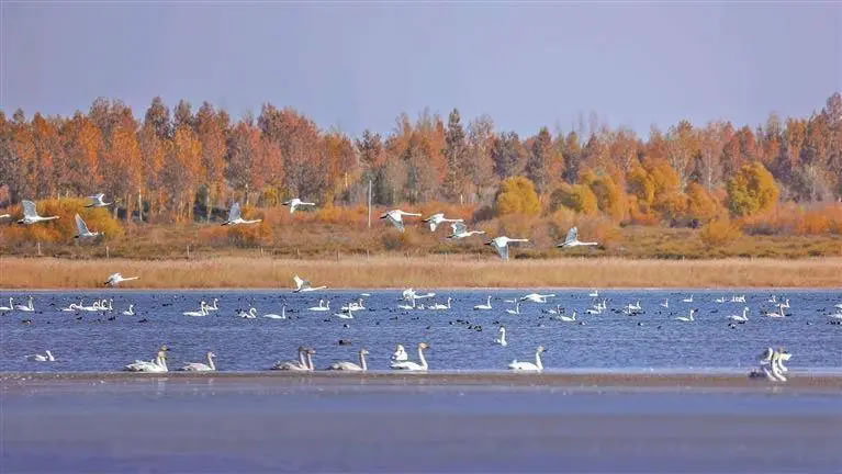 黨大朋介紹,隨著生態(tài)環(huán)境持續(xù)改善,這里已成為候鳥遷徙途中的重要補(bǔ)給站和棲息地。“這里目前已記錄到的鳥類超過150種,包括灰鶴、大天鵝、白鷺等國家重點(diǎn)保護(hù)鳥類。隨著遷徙高峰即將到來,會(huì)有更多候鳥陸續(xù)抵達(dá)。”黨大朋說。