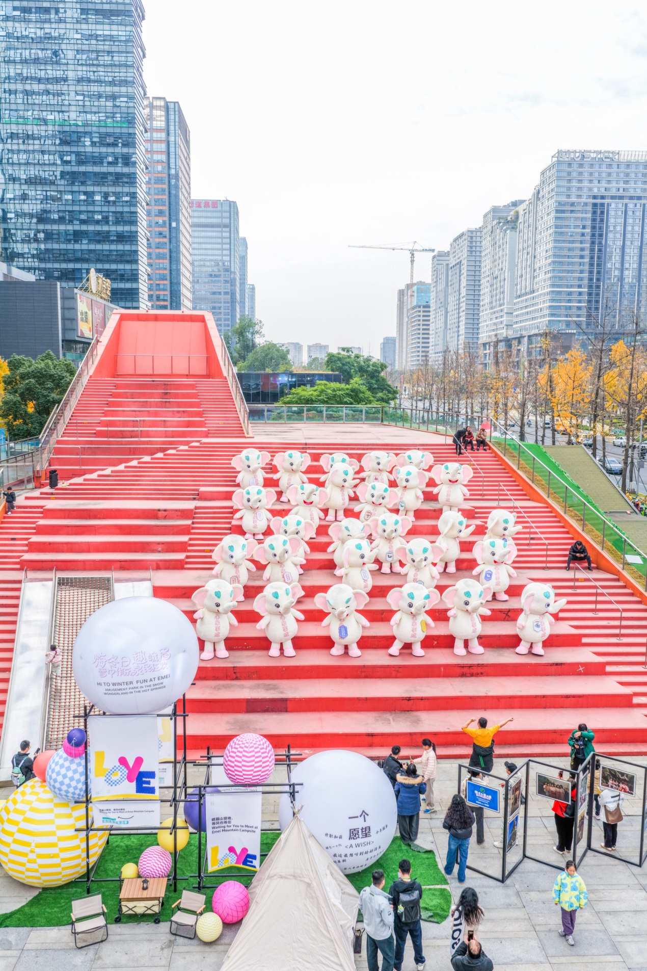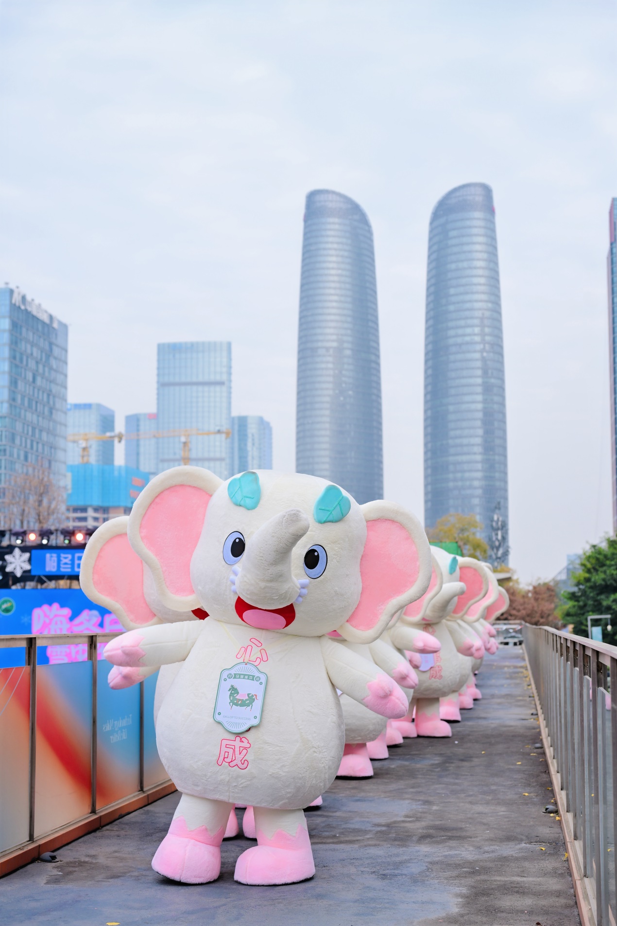 巡游現(xiàn)場熱度直接引爆全城,27只小福象沿街靈動穿梭,每一步都自帶萌系暴擊,瞬間俘獲所有市民游客的目光,將交子大道的冬日氛圍推向頂峰?蓯鄣纳硇、靈動的姿態(tài)引得孩童們歡呼雀躍,紛紛追著福象奔跑嬉戲,童真笑語灑滿整條街;成年人也難抵萌趣誘惑,紛紛駐足打卡,爭相與福象擊掌互動、親密合影,用鏡頭定格這份冬日美好,在溫馨互動中寄托自己的冬日心愿,現(xiàn)場歡聲笑語此起彼伏,熱鬧氛圍堪稱空前。成都市民李女士滿心歡喜地說道:“孩子徹底被小福象迷住了,吵著鬧著非要立刻去峨眉山看雪耍樂,這份冬日期待直接拉滿!”市民紛紛表示被小福象徹底圈粉,峨眉山冬日之旅已成必打卡清單TOP1。