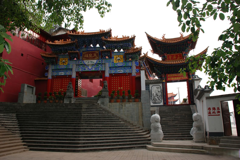保山玉皇閣,位于保山市城西太保山上,是保山境內(nèi)規(guī)模最大,保存最好的道教建筑群之一。始于嘉靖二十八年(1549年),三十八年(1559年)落成開(kāi)放。占地面積3399.2平方米,依地形而建,坐西向東,橫向布局為三個(gè)院落,分別為山門(mén)、三官殿、灶君樓。主體建筑玉皇閣居于整個(gè)建筑群的中央,由大殿及鐘、鼓二亭組成一個(gè)“品”字形院落。整個(gè)建筑氣勢(shì)雄偉,結(jié)構(gòu)精湛,裝飾華美,充分體現(xiàn)了封建社會(huì)帝王為尊、皇權(quán)至上的構(gòu)思主題,具有極高的史學(xué)研究和藝術(shù)鑒賞價(jià)值。 2006年5月,保山玉皇閣被國(guó)務(wù)院公布為第六批全國(guó)重點(diǎn)文物保護(hù)單位。