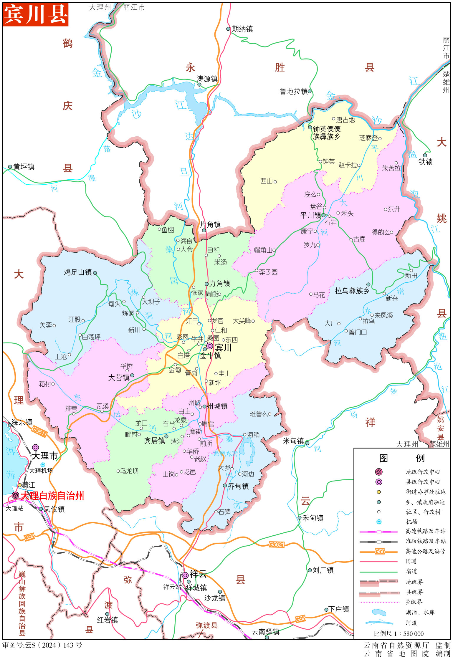 賓川縣轄8個(gè)鎮(zhèn)、2個(gè)民族鄉(xiāng):