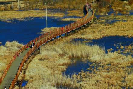 草海上有走婚橋,長達(dá)300余米,連接著兩岸摩梭人的村莊,為走婚的“阿夏”提供了便捷的通道,因此號稱——“天下第一愛情鵲橋”。據(jù)說它還是左所土司喇寶成的漢族夫人去后宮的一條捷徑。