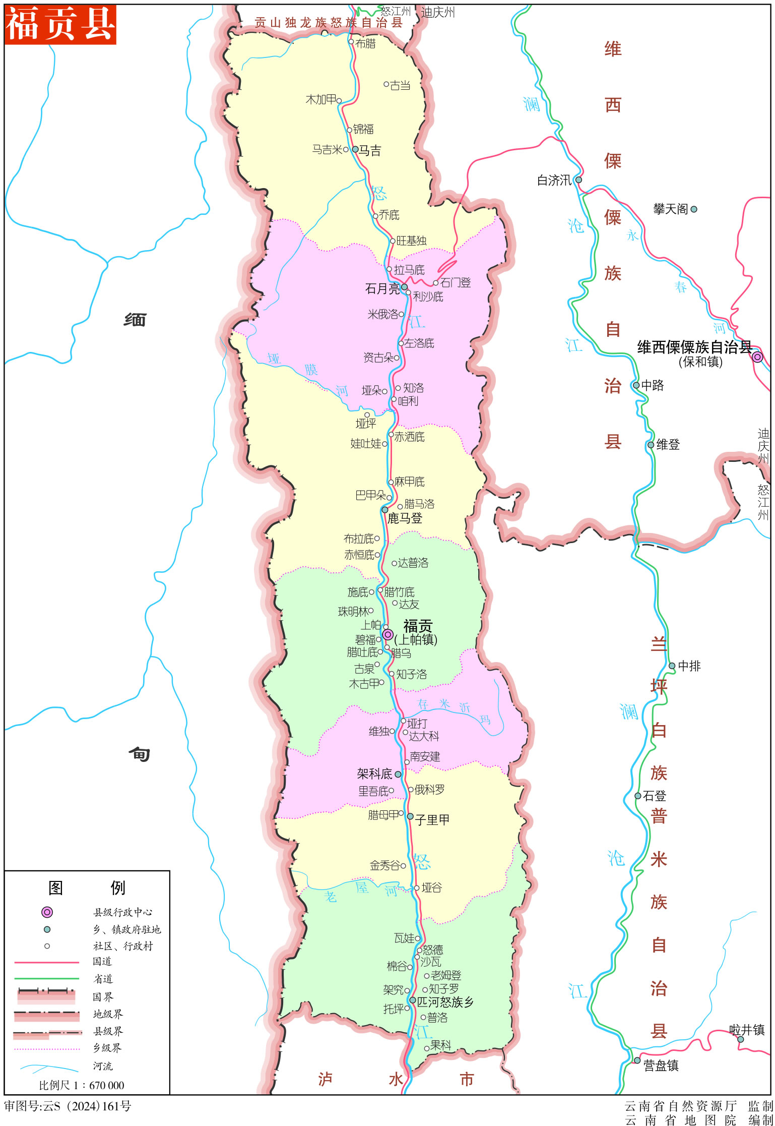 福貢縣轄1個(gè)鎮(zhèn)、6個(gè)鄉(xiāng):