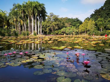 水生植物園水面面積15畝,收集和展示熱帶地區(qū)種類繁多的水生植物,現(xiàn)收集保存了約100種(品種)。該園按照水體深淺等水濕小環(huán)境和植物生態(tài)習(xí)性分別種植了不同生活形態(tài)的水生植物,包括:浮葉植物——植物根系或地下莖扎根水底,莖生長于水中,葉柄長度可隨水位而伸長,葉及花朵浮在水面上的水生植物,如王蓮、睡蓮、芡實(shí)、萍蓬草。浮水植物——植株整體漂浮于水面,根部不生于泥中,可隨水流四處漂泊的植物,如雨久花、滿江紅、鳳眼蓮、美洲槐葉萍、紫萍、大漂、眼子菜、荇菜。沉水植物——完全的水生植物,大部分生活周期中植株沉水生活,它們多生活在水較深的地方,根長在土里,葉片通常呈線形、帶狀,如金魚藻、黃花貍藻、黑藻等。挺水植物——下部或基部沉于水中,根或地下莖扎于泥中生長發(fā)育,上部植株挺出水面,通常生長在淺水或水邊的水生植物。如荷花、紙莎草、畦畔莎草、水蔥、長節(jié)淡竹芋、白粉塔里亞、水芋、水生馬蹄、撒金澤瀉、澤瀉、黃花藺、千屈菜、蔗草、菖蒲、慈姑、黃花鳶尾。濱水植物——生長在岸邊或堤岸潮濕的地方,喜水耐濕,如水杉、落羽杉、水松、木芙蓉等。