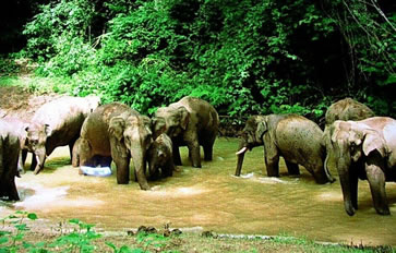 步行道旁的森林中,處處可見(jiàn)野象出沒(méi)和活動(dòng)的痕跡,幸運(yùn)的游客或許還在傍晚之際或黎明之時(shí)看到林間漫游的野象群。在野象谷,游人可觀看大象表演節(jié)目,這里現(xiàn)有馴養(yǎng)的大象16頭,這是我國(guó)第一所馴象學(xué)校,這些訓(xùn)練有素的龐然大物,會(huì)向游客鞠躬,表示歡迎,會(huì)作頭頂?shù)亍⒛_朝天的倒立,會(huì)合著音樂(lè)的旋律跳舞、能過(guò)獨(dú)木橋、會(huì)用象鼻作"踢"球表演……游客可騎在象背上或坐在象鼻上,與象合影,甚至可躺在地上,讓大象用腳給你按摩……它們的靈性乖巧,令你不得不拍案叫絕。 |