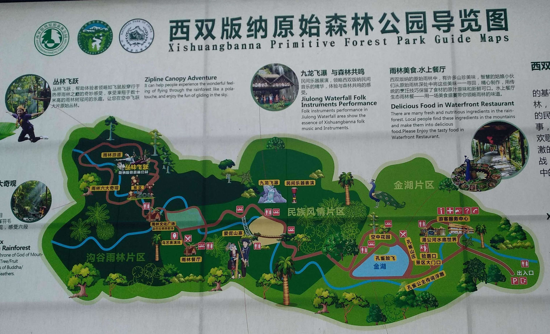 中心游憩區(qū),建有娛樂中心,會議服務(wù)中心,西雙版納民族歌舞餐廳,停車場所。可為客人籌辦會議,組織娛樂活動(dòng),西雙版納學(xué)術(shù)交流,貿(mào)易洽談會……。西雙版納原始森林公園,森林密布,山青水碧,游覽面積寬闊,西雙版納民俗活動(dòng)多樣,服務(wù)設(shè)施齊全。游人們可以在此飽覽風(fēng)光,體驗(yàn)西雙版納民族風(fēng)情,獲得美的享受。
