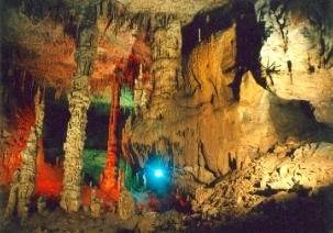 天臺(tái)山溶洞離縣城32公里,位于麟風(fēng)鄉(xiāng)畢壩公路邊的老鷹巖上,具有宏、美、寬、多的特點(diǎn)。洞有四層,每層之間高差20~50米,互相貫通,各有廳堂,其中可開發(fā)利用3層。已探測的第二層洞面積64095平方米,長2138.2米。洞終標(biāo)高1188.94米,其中:主洞長1264米,寬35米,高約25米;支洞深874.1米,寬25米,高18~25米。有10余個(gè)大廳,大者寬約100米,小者寬20~30米。洞內(nèi)次生碳酸鈣沉積物類型繁多,色彩絢麗,形成各異。單體、復(fù)合體共生,黃色、淡紅色、白色或無色透明石乳、石筍、石柱比比皆是,多以站立式、側(cè)掛式、懸垂分布式。