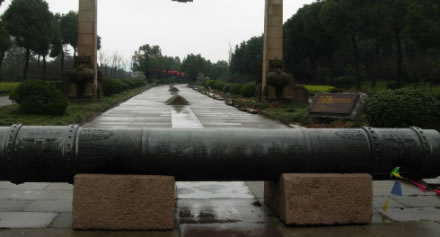 龍杠,位于入口處的大禹陵牌坊前一橫臥的青銅柱子,名龍杠。龍杠兩側(cè)各有一柱,名拴馬樁。凡進(jìn)入陵區(qū)拜謁者,上至皇帝,下至百姓,須在此下馬、下轎,步行入內(nèi),以示對大禹的尊崇。龍杠上有“宿禹之域,禮禹之區(qū)”的銘文。