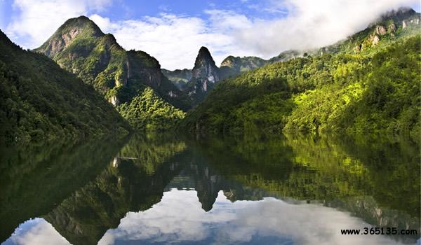 九灣仙峽:于1999年被評為國家A級旅游區(qū)及縣級風(fēng)景名勝區(qū),距縣城約45公里,九灣仙峽是典型的水蝕峽谷。呈“V”字形,峽谷景區(qū)全長8公里,總面積約5.3平方公里。峽谷主要以石、洞、潭、瀑、壁最為著名。景區(qū)中天然池潭百個以上,其中深4-5米,2000多平方米以上有3個,深1-3米,面積30多平方米的不計其數(shù),具有“天然泳游池”、“天然河床”等之稱。潭的周圍奇石形狀多樣,如鱷魚石、石凳、石房子等。其中最為奇特的景觀是“風(fēng)動石”、天門峽、天然河床。風(fēng)動石位于山的最高處,石高約2米高,橢圓形,約5噸重,人用手可以搖動,但永遠不會掉下。天門峽高約7米,寬50厘米,沿著石碑進入,轉(zhuǎn)彎處寬約30厘米,往前走是可容納10余人的天然洞穴,上面還有三塊石頭組成的“三柱鼎立”景觀。天然河床位于九彎仙峽最底部,全長約10000米,平均寬度約70米,水由西向東流。峽谷河床由兩個天然巖壁組成,巖壁光滑,中間略凹,上下巖壁高度相差約1.5米。上級巖壁而積約1000平方米,中間略凹,有積水,最深處約0.5米,像天然盤子。水隨著巖壁往下流,猶如天然滑梯,巖壁高約1.5米,寬1米,坡度約45度,巖壁光滑。下級巖壁面積約2000平方米,中間略凹,最深處約1米,中間積水。峽谷內(nèi)溪水水質(zhì)清澈,達到國家一級飲用水標準。