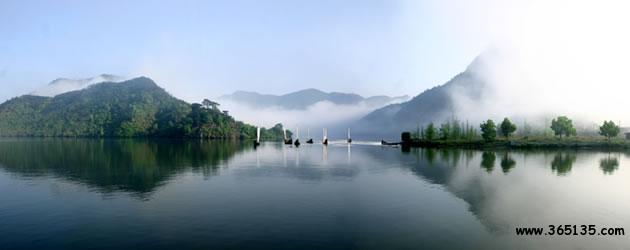 仙宮湖:崛立在云和縣緊水灘的浙南第一壩緊水灘水電站大壩,將滔滔甌江攔腰鎖住。在水電站建成的同時(shí),浙南的茫茫林海中奇跡般地出現(xiàn)了一個(gè)巨大的人工湖緊水灘庫湖。1993年8月9日經(jīng)地區(qū)行署批準(zhǔn),改名為仙宮湖。放眼全湖,碧波蕩漾,晶瑩似鏡,周圍千姿百態(tài)的奇巖異峰、浩如煙海松濤,點(diǎn)綴湖邊的村莊、田野和山林,好似一幅色彩斑斕,絢麗多姿的山水畫。這里廣闊的湖面,煙波浩渺,水山相連,望不盡頭。與千島湖相比,雖無“千島”之態(tài)。但湖中島嶼正在一個(gè)個(gè)形成。隨著蓄水位的漸漸增高,將會(huì)出現(xiàn)更多“湖心之島”。那晶瑩澄碧的湖水在陽光的照射下,閃著瀲滟的波光,似一顆閃眼的明珠,鑲嵌在群山峻嶺之中。湖兩旁的松杉。翠竹掩映于湖唇,好似繡上一道花邊,君若泛舟湖中,其可謂“人行明鏡中”了。倘若天氣作變,更給景色增添妙異的變幻。晴天,頭上藍(lán)天萬里,腳下碧波千頃,點(diǎn)點(diǎn)白帆移動(dòng),轟轟船只掠過,舉目望去,山水一色;回首顧盼,卻置身于綠水青山之中。雨天,霧靄茫茫,層林碧水連成一片,人在湖面,有身置云霧瓊樓仙境之感。尤其在赤石、龍門一帶,水域?qū)掗煟瑣u嶼列布,湖區(qū)四周還有“九潭十八灣”、“夏洞天”、“龍老洞”、“蝴蝶洞”、“牛頭山”等勝景。仙宮湖不愧為特具魅力的旅游勝地。