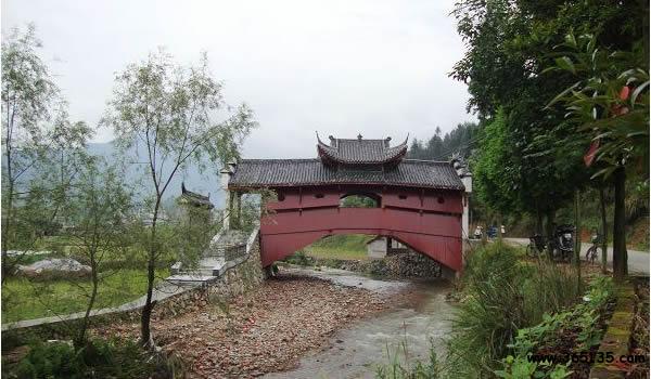 如龍橋:位于慶元縣舉水鄉(xiāng)月山村南側(cè),橫跨于舉溪,呈南北走向,因其態(tài)勢(shì)與后山山脊的古松林依稀相連,橋似龍首下傾,故名。如龍橋修建于明天啟五年(1625),其結(jié)構(gòu)復(fù)雜,工藝精湛,功能完備,系迄今發(fā)現(xiàn)有明確紀(jì)年、年代最早的木拱廊橋之一。此橋建筑上頗具宋代遺風(fēng),目前在全國(guó)已屬少見,具有很高的歷史、藝術(shù)和科學(xué)考察價(jià)值,為全國(guó)重點(diǎn)文物保護(hù)單位。