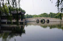 南潯文園位于南潯風(fēng)景名勝區(qū),四周有河流,中間有湖泊,北面靠近江南水鄉(xiāng)一條街,又與小蓮莊、嘉業(yè)堂藏書樓等名勝靠近。南潯文園整體建筑分南北兩部分,由天橋相連,南園主要為江南園林,周圍建有兒童樂園、大型樹樁盆景園、名人詩廊等;北園以湖心文昌閣為中心,周圍布有名人詩廊、紅軍長征紀(jì)念館、吳壽谷藝術(shù)館、徐遲紀(jì)念館、明代石獅等景點。