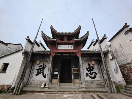 雍睦堂建于明正德年間,是仲分宗良公享祀廳堂,門面以蘇式磚雕裝飾,精美而華麗。中央部分突出于兩側(cè)檐口之上,成三樓式,高約10米,檐下有磚的小斗拱,枋上有亞字紋,上方的豎匾刻有“進(jìn)士”二字,二側(cè)的墻全是平整的素面,烘托出中央的富麗精細(xì)和輪廓跳動(dòng)。頂上有一葫蘆,上插方天畫戟,使得整個(gè)門面顯得有節(jié)制、有層次也相當(dāng)明快。氣勢(shì)雄偉而壯觀。